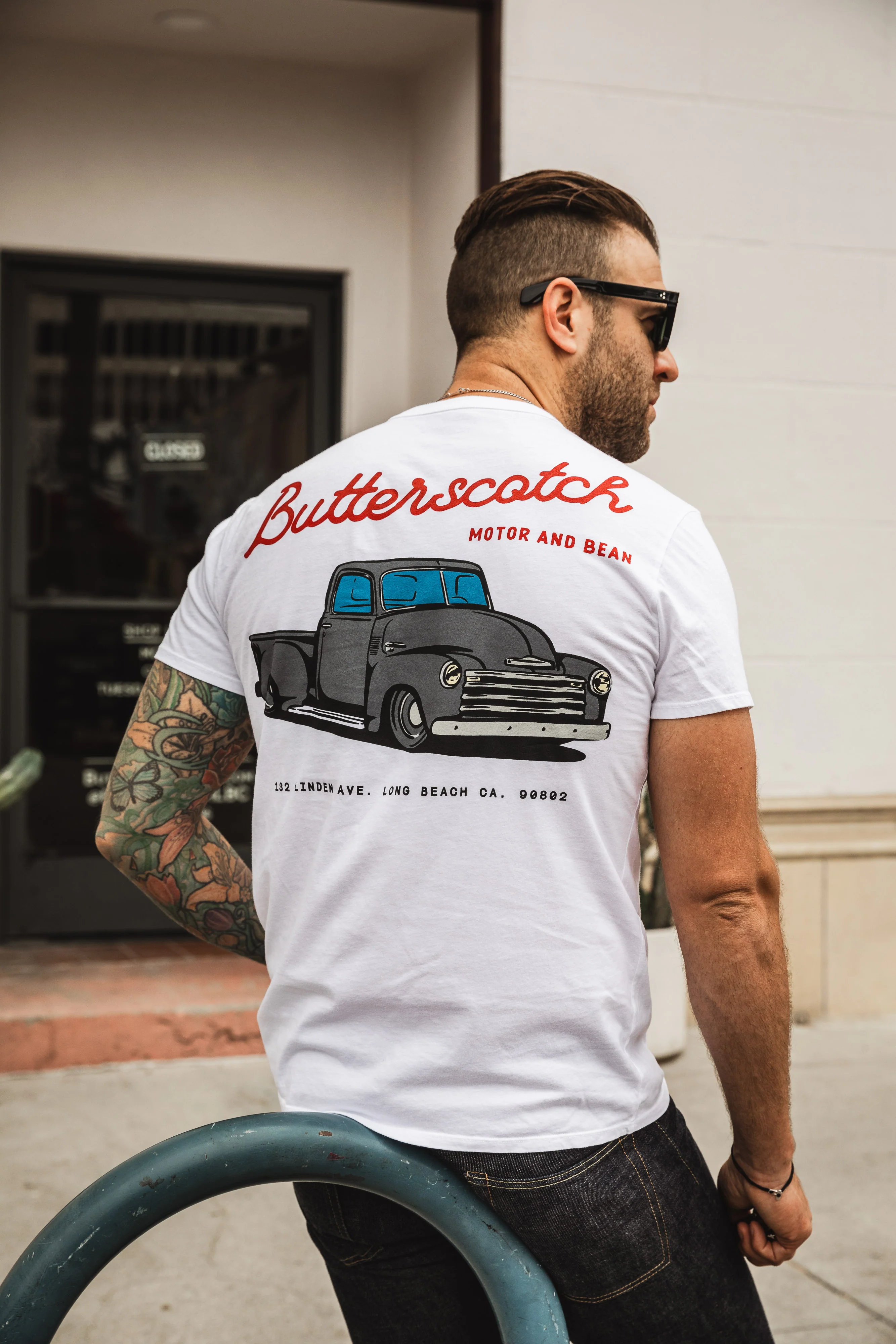 After almost a decade of sitting in the garage and very slow rebuilding process the truck you see on the back of tee is reincarnate of Bluebird brought back to its glory and part of a restoration project I got to do next to my father. Which for me was a really big deal. We now have a classic in the family that has more then just a story but also a forever icon of Butterscotch and proof to show you what a little patience, hard-work and a dream can do.