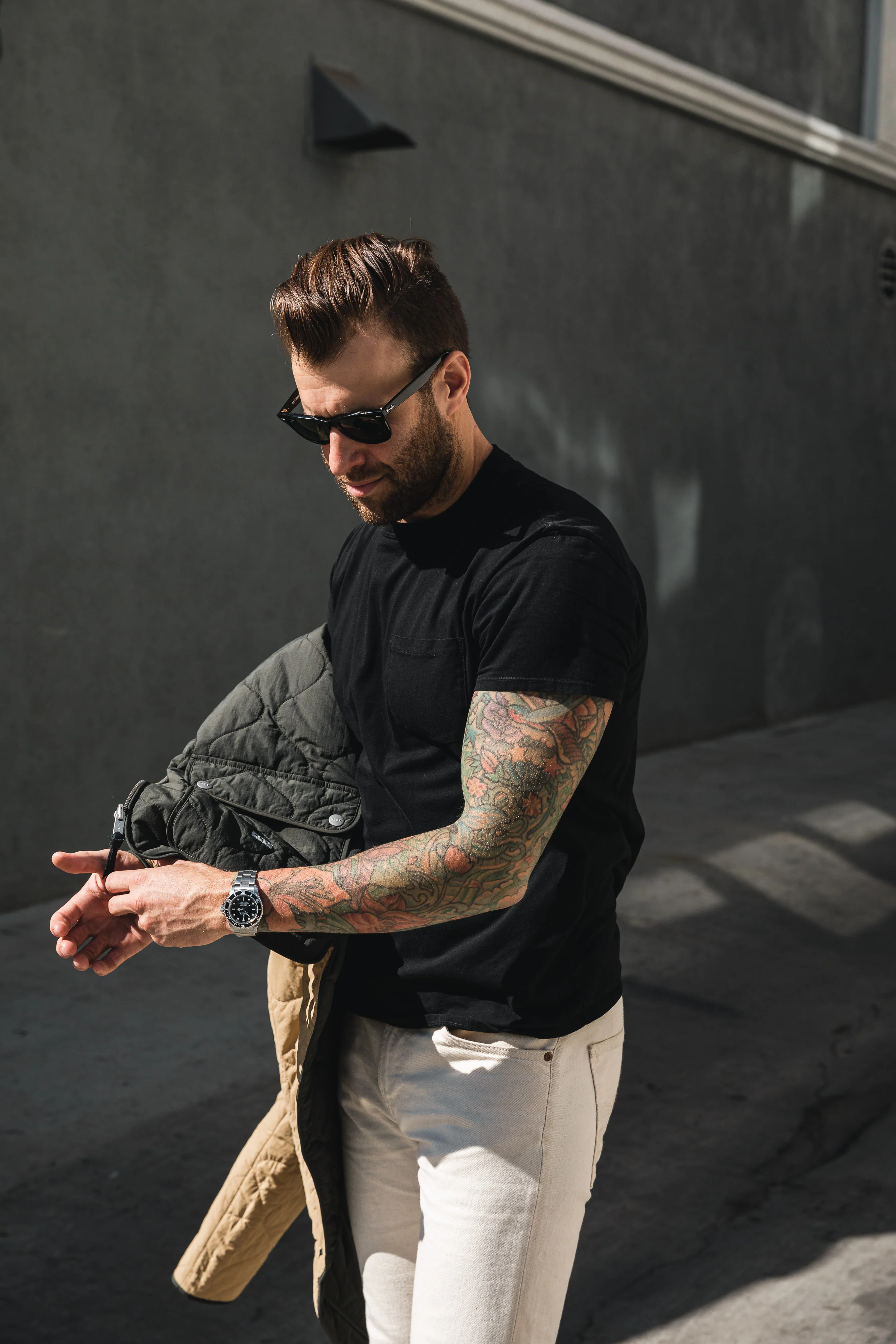 I like to consider myself a jeans and tee kind of guy. A simple pocket tee is a staple in any wardrobe. The ButterScotch Shop Tee is a collective of design details to construct what I call the perfect fitting Tee. Designed in house here at ButterScotch and then Cut & sewn right here in Los Angeles for unparalleled quality in 30 singles cotton that only gets better with each wash for a softer hand feel.