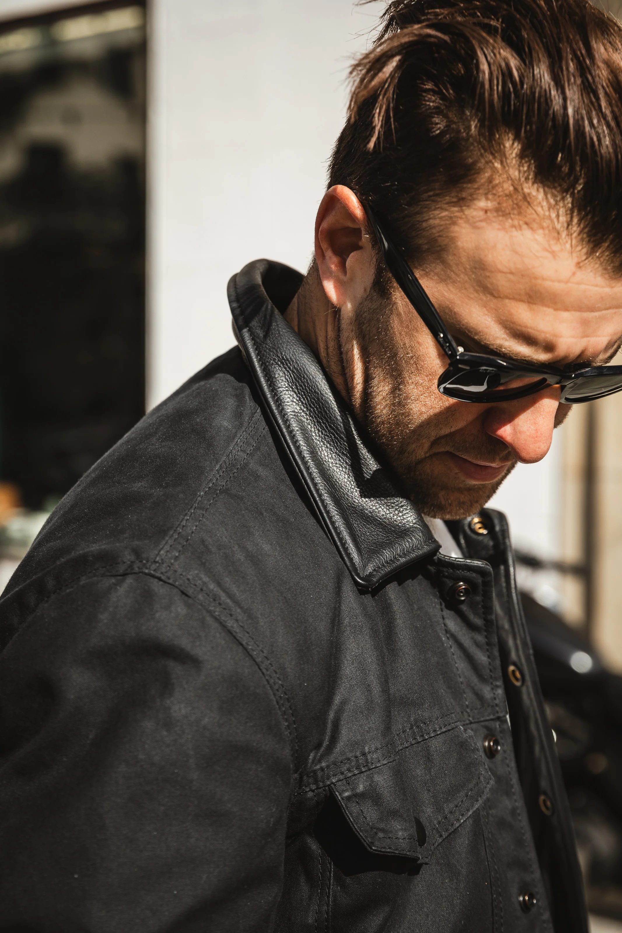 Lots of thought went into this piece and we wanted to create something familiar but also a cut above the regular offering out there. I personally love the way the 14oz waxed canvas ages over time and what better of a silhouette to use then that of a Type III denim jacket that always looks better with age. The waxed outer shell is water resistant and wind resistant, and if you are a rider also slide resistance due to the heavyweight body material. Standard waxed canvas shells are typically made from 8-10oz waxed and we opted to use a sturdy 14oz waxed canvas that has been tested and proven for wearability and longevity. These jackets can always be re-waxed when needed.